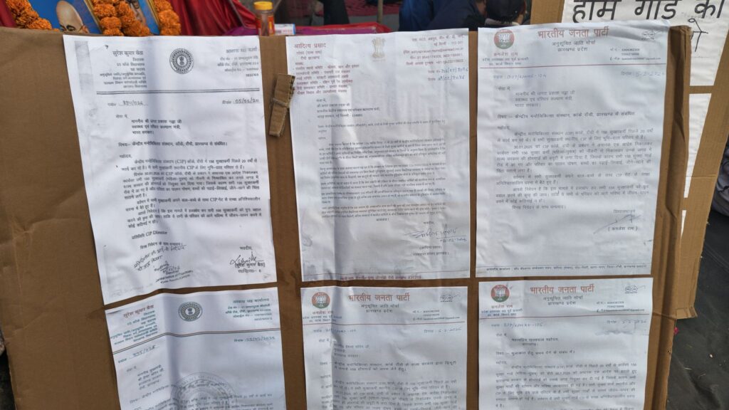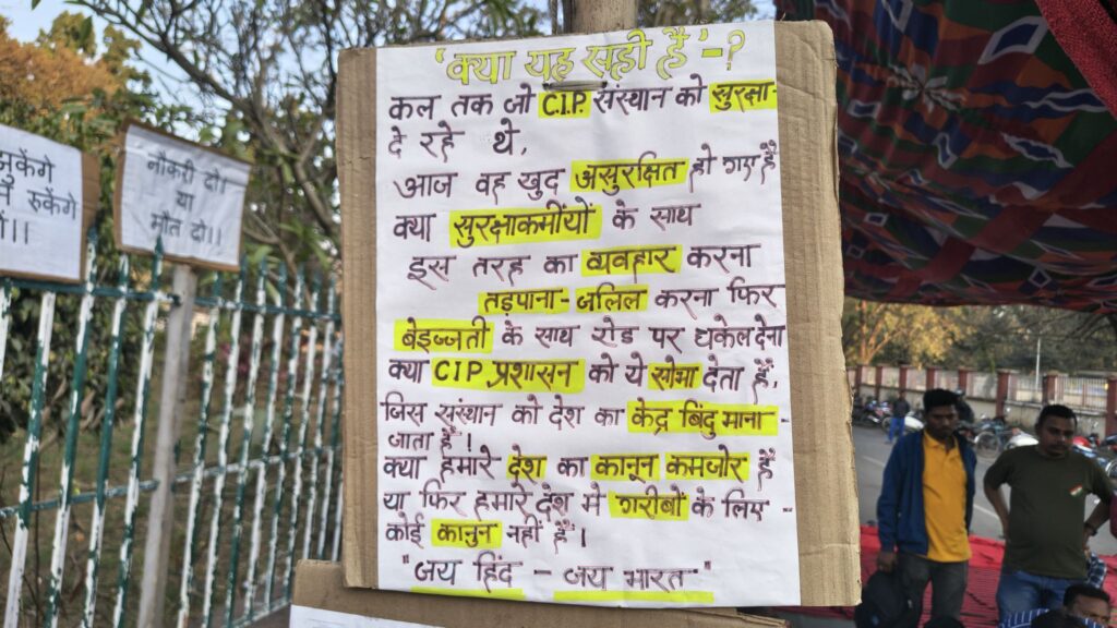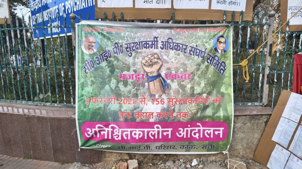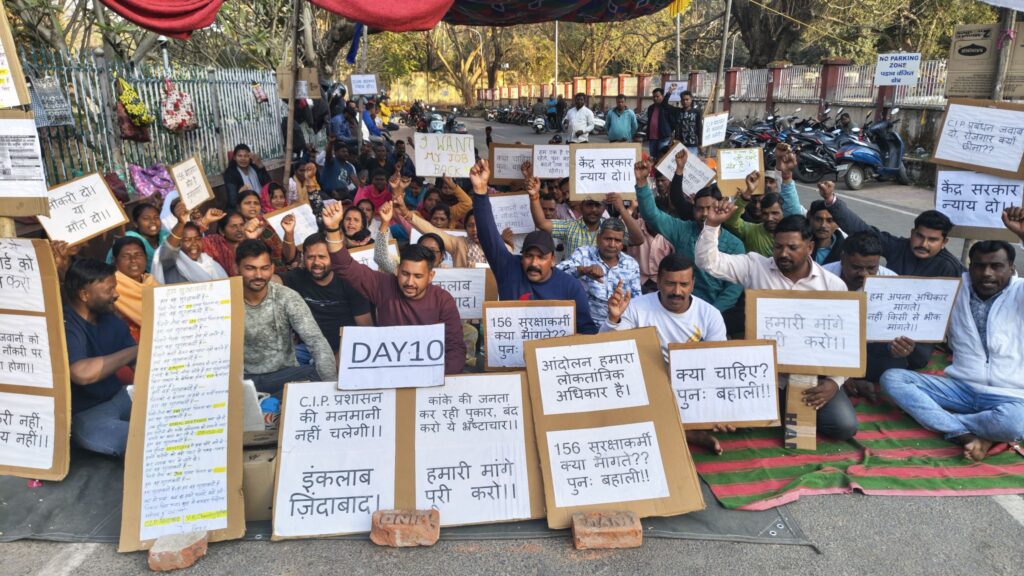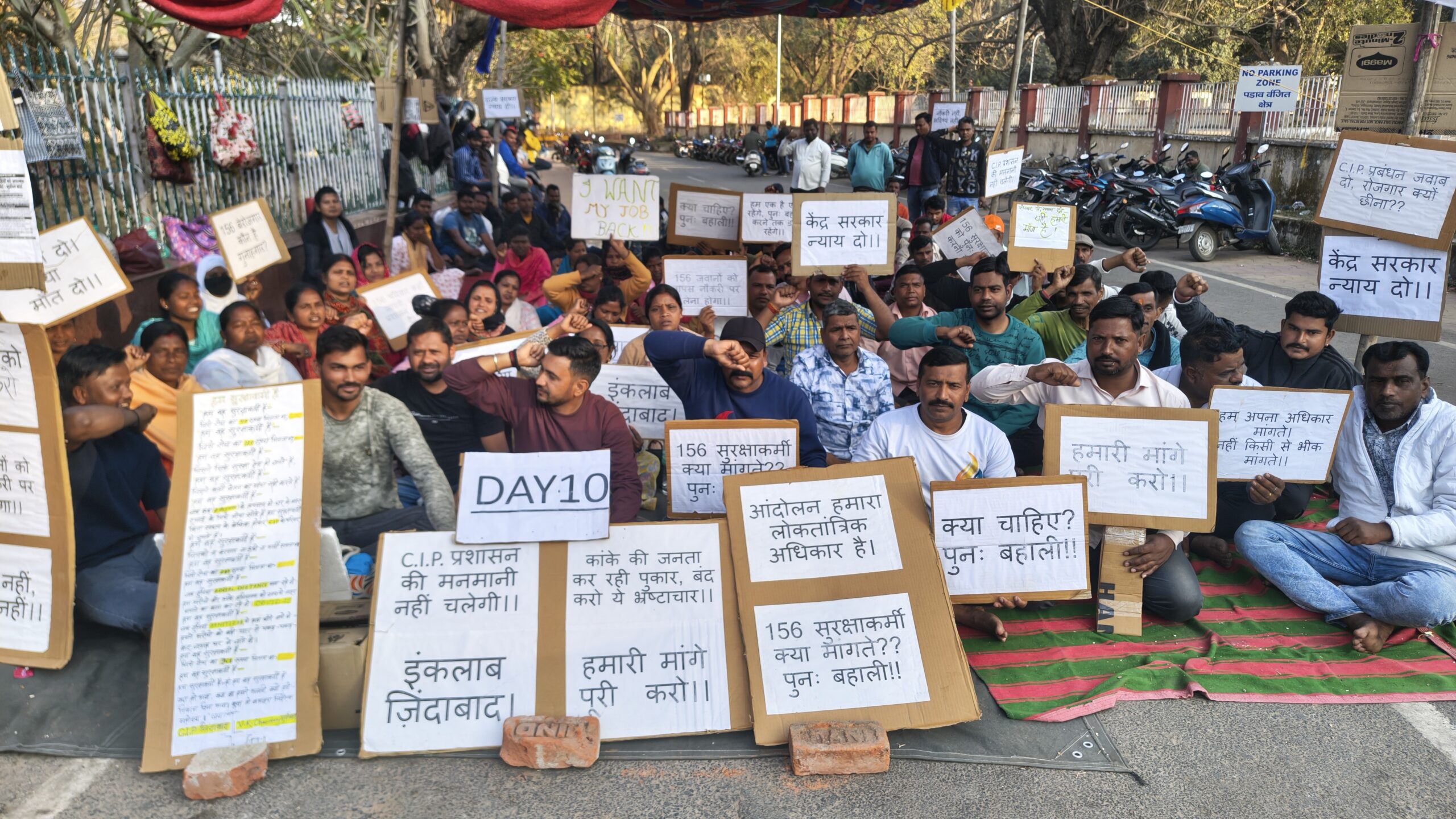 कांके: केंद्रीय मनोचिकित्सा संस्थान (सीआईपी) से हटाए गए सुरक्षाकर्मियों का आंदोलन गुरुवार को दसवें दिन भी जारी रहा। अपनी बहाली की मांग को लेकर सुरक्षाकर्मी संस्थान परिसर के बाहर धरना-प्रदर्शन कर रहे हैं।