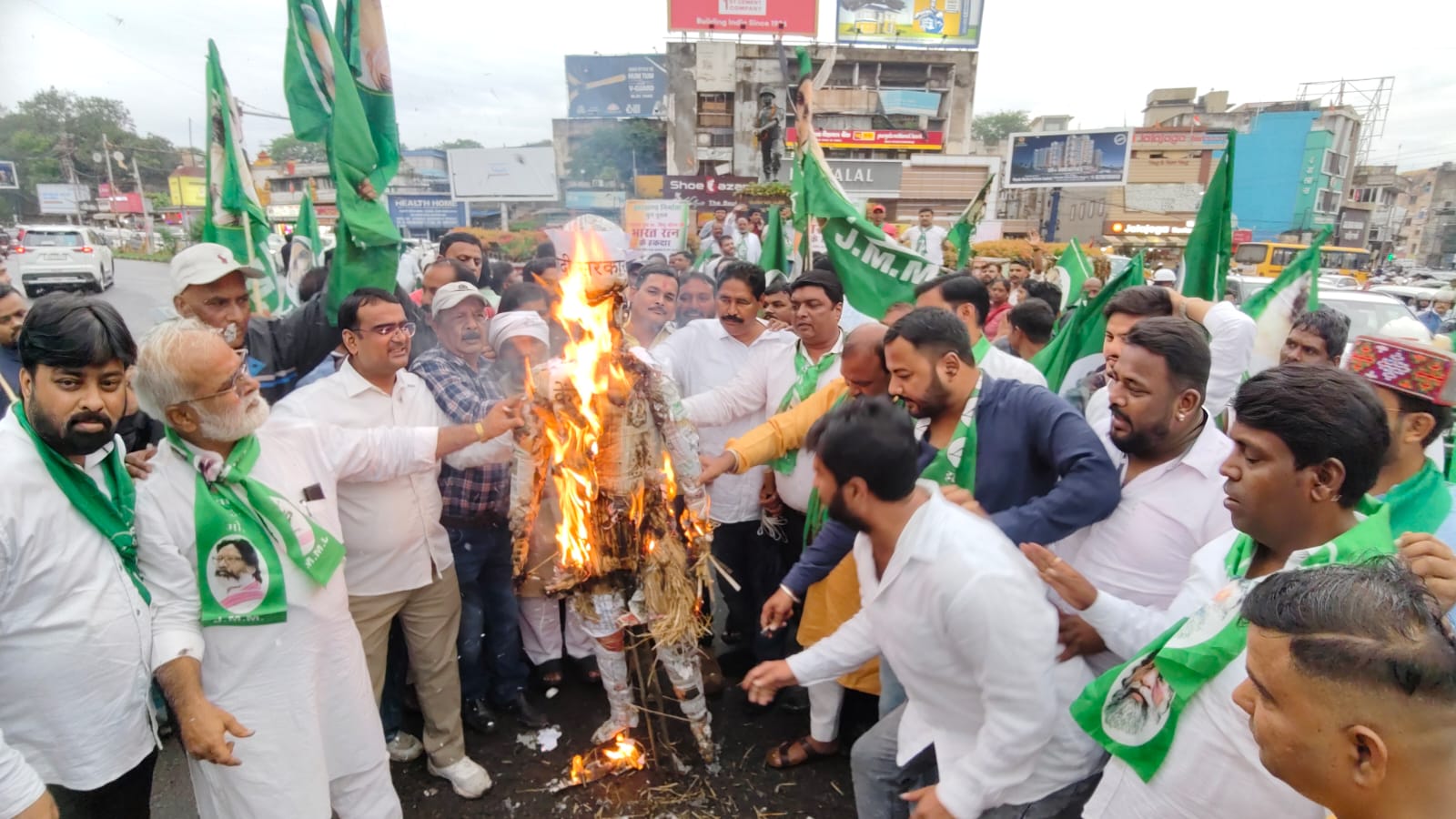 130वां संविधान संशोधन बिल के खिलाफ झामुमो ने रांची में किया पुतला दहन