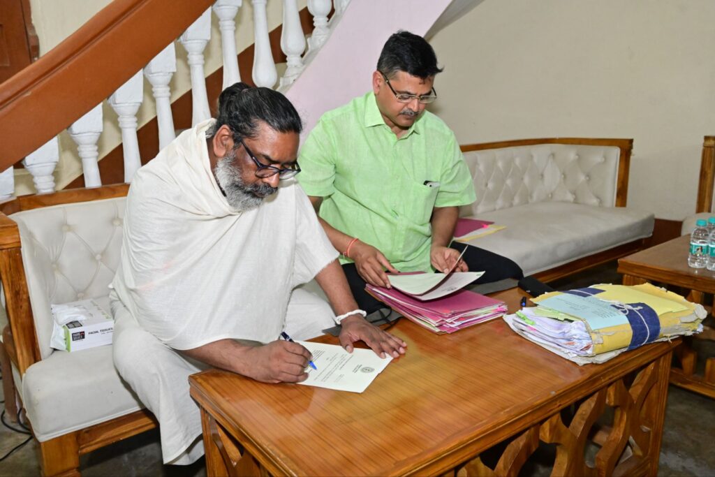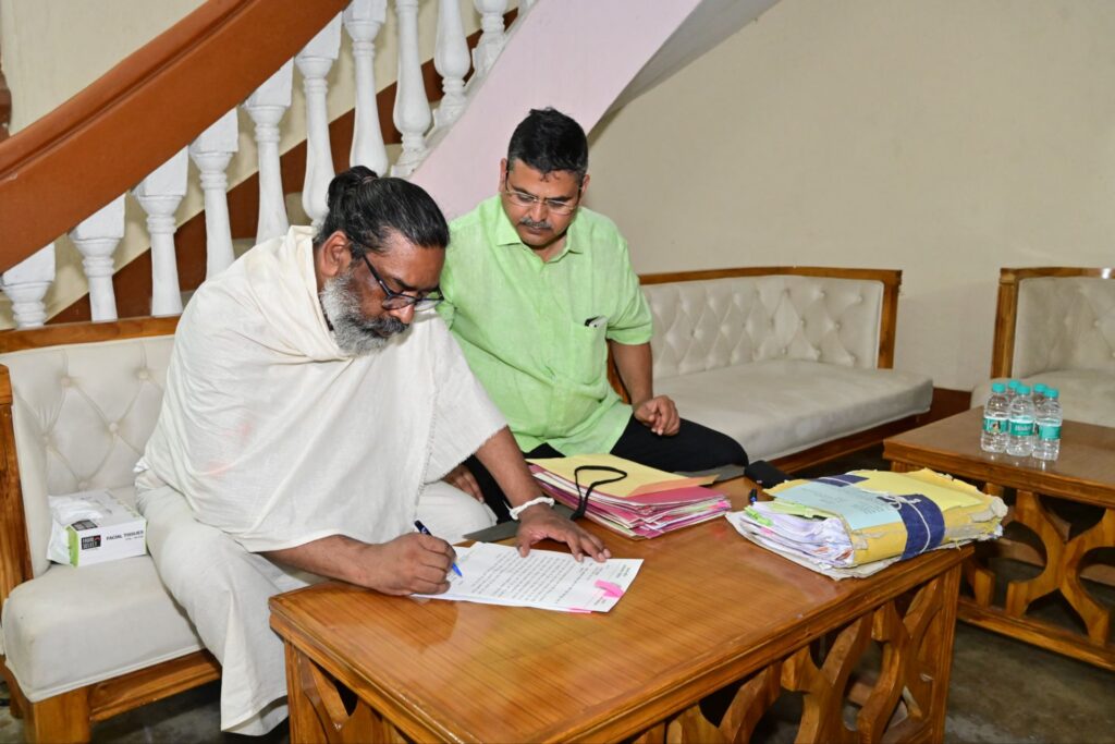 रांची: गांव के खुले आंगन, मिट्टी की महक और अपनत्व से भरे वातावरण में रहते हुए भी मुख्यमंत्री श्री हेमन्त सोरेन की प्राथमिकता जनता की सेवा ही है। इन दिनों अपने पैतृक गांव नेमरा में रहकर एक साथ पुत्र धर्म और राज्य धर्म का निर्वहन कर रहे हैं।एक ओर जहां वे दिवंगत पिता दिशोम गुरु शिबू सोरेन जी के श्राद्ध कर्म की स्थानीय परंपराओं और रीति-रिवाजों का निर्वाह कर रहे हैं वहीं राज्य के विकास और प्रशासनिक कार्यों के प्रति पूरी तरह सक्रिय हैं। गांव के सादगीपूर्ण माहौल में रहते हुए वे लगातार विभिन्न विभागों से प्राप्त फाइलों और प्रस्तावों पर निर्णय ले रहे हैं तथा अधिकारियों से फोन और वीडियो कॉन्फ्रेंसिंग के माध्यम से संवाद कर रहे हैं।