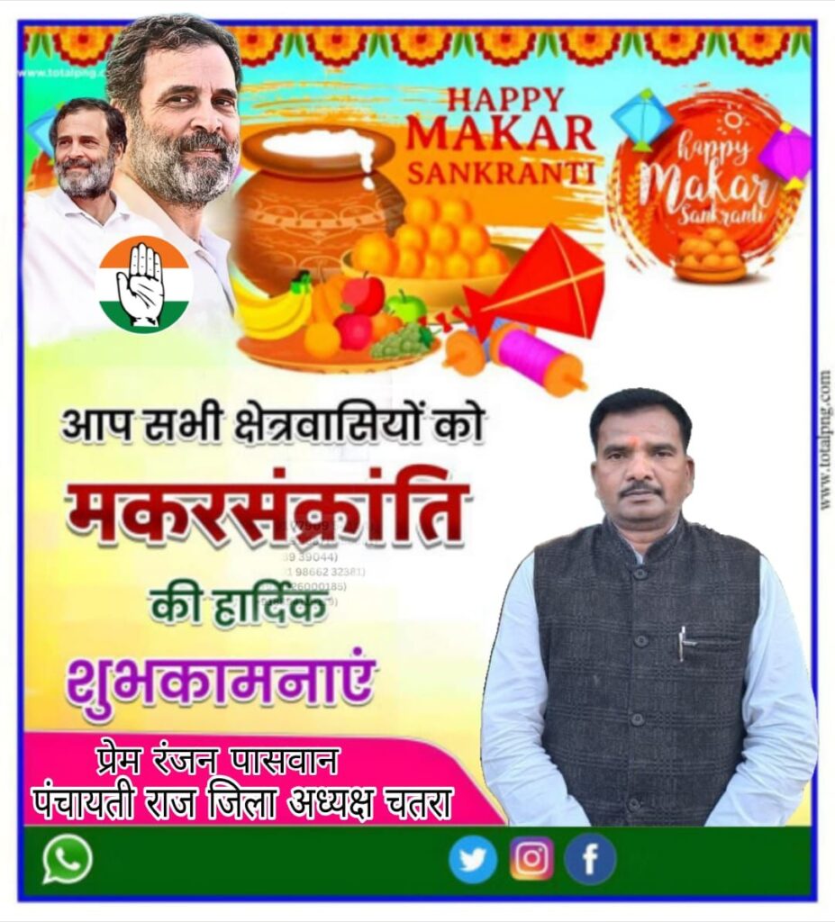चतरा: कांग्रेस पंचायतीराज जिला अध्यक्ष प्रेम रंजन पासवान ने मकर संक्रांति और लोहड़ी के पावन पर्व की शुभकामनाएं दी हैं। उन्होंने कहा कि मकर संक्रांति और लोहड़ी जैसे त्योहार हमारी समृद्ध सांस्कृतिक परंपराओं, सामाजिक सौहार्द और प्रकृति के प्रति कृतज्ञता के प्रतीक हैं।