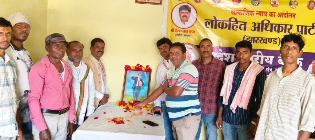 कांके/ रांची : डॉ. भीमराव अंबेडकर की जयंती के अवसर पर मंगलवार को रांची के कांके, हथिया पत्थर स्थित लोकहित अधिकार पार्टी के प्रदेश कार्यालय में भव्य कार्यक्रम का आयोजन किया गया। कार्यक्रम में प्रदेश के विभिन्न जिलों से आए पार्टी के प्रतिनिधियों, पदाधिकारियों और कार्यकर्ताओं ने भाग लिया।