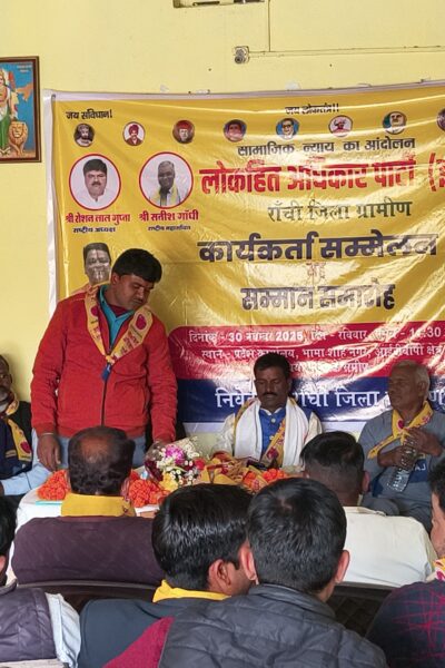 रांची : लोकहित अधिकार पार्टी रांची जिला कार्यकर्ता सम्मेलन सह सम्मान समारोह पार्टी के प्रदेश कार्यालय में बड़े ही उत्साह और गरिमा के साथ संपन्न हुआ। कार्यक्रम में मुख्य अतिथि के रूप में प्रदेश अध्यक्ष हरिनाथ साहू उपस्थित रहे, जबकि कार्यक्रम की अध्यक्षता जिला अध्यक्ष अशोक राम एवं प्रेम साहू ने संयुक्त रूप से की। […]