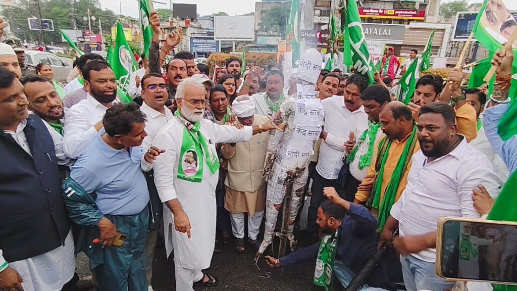 रांची: केंद्र की भाजपा सरकार द्वारा लोकसभा में काला कानून के रूप में पेश किए गए “संविधान संशोधन विधेयक 2025” के विरोध में आज दिनांक 21 अगस्त को झारखंड मुक्ति मोर्चा रांची जिला समिति के द्वारा रांची अल्बर्ट एक्का चौक पर केंद्र सरकार का पुतला दहन किया गया।