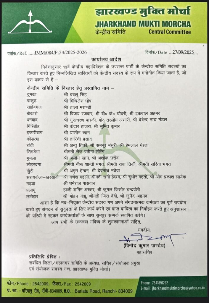 उन्होंने संगठन के प्रति आभार जताते हुए कहा कि वे पूरी निष्ठा और मेहनत से झामुमो के लिए कार्य करेंगे और गरीब, पिछड़े तथा आदिवासी समाज की आवाज़ को मज़बूती से उठाएंगे.