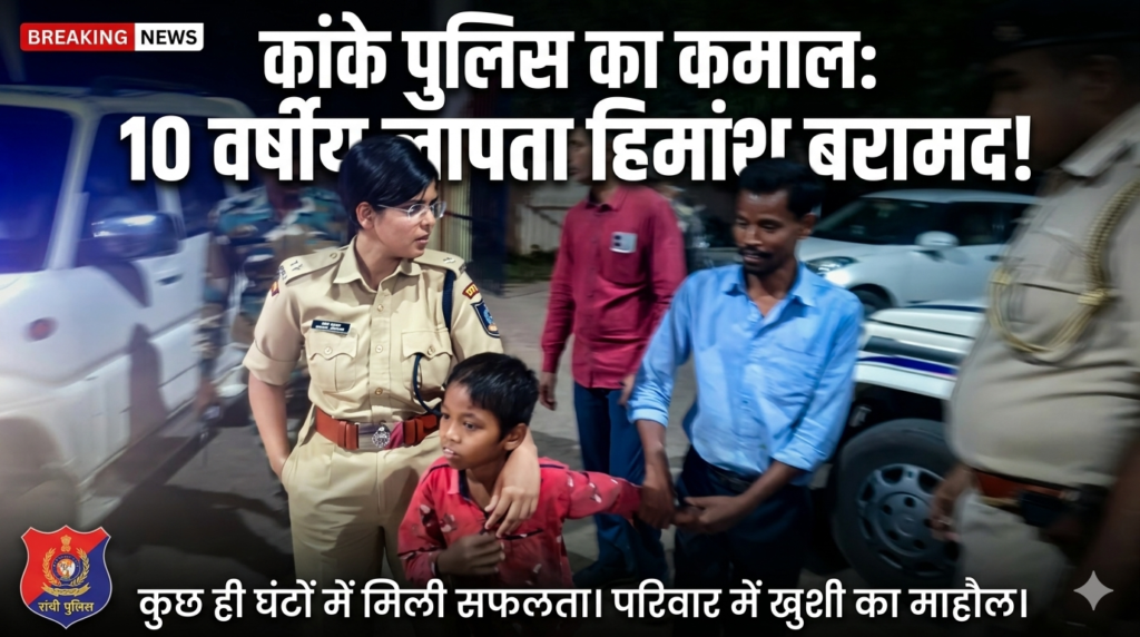 कांके : थाना क्षेत्र में मंगलवार को लापता हुए 10 वर्षीय बालक हिमांशु को पुलिस ने महज कुछ ही घंटों में सकुशल बरामद कर लिया। इस त्वरित कार्रवाई में प्रशिक्षु आईपीएस साक्षी जमुआर की अहम भूमिका रही, जिसकी व्यापक सराहना हो रही है।