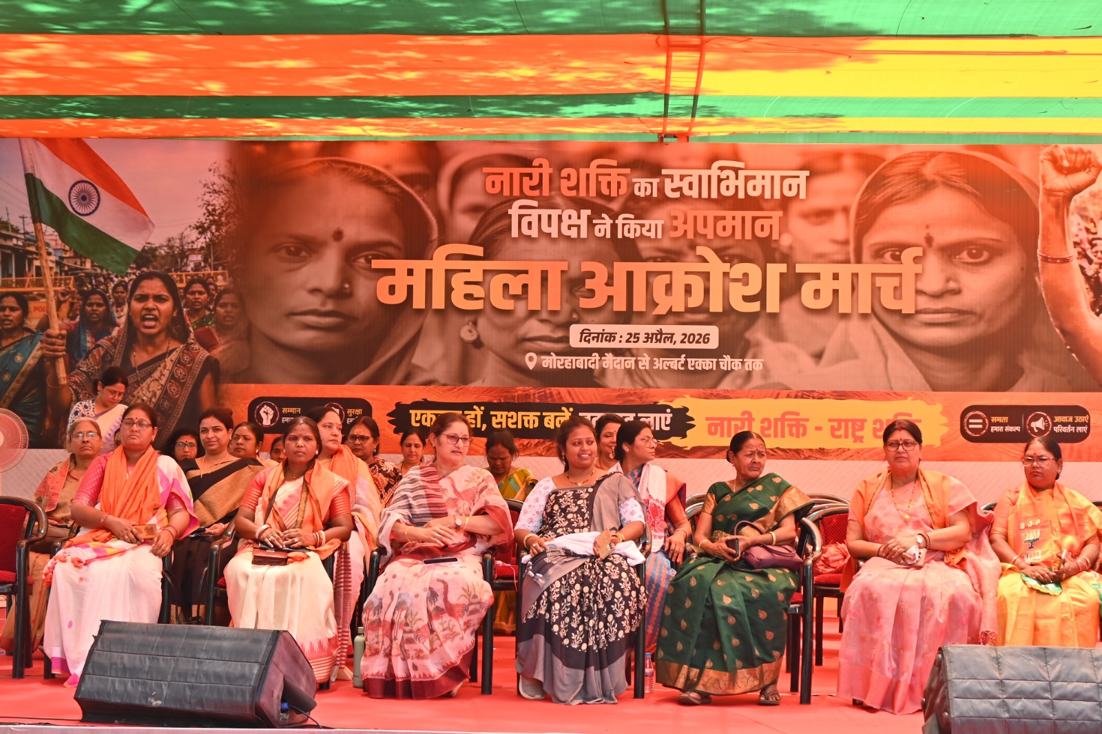 आक्रोश मार्च का नेतृत्व कर रही केंद्रीय मंत्री अन्नपूर्णा देवी ने मोरहाबादी मैदान में आयोजित विशाल सभा को संबोधित करते हुए विपक्ष पर तीखा हमला बोला। उन्होंने कहा कि प्रधानमंत्री मोदी ने 2014 से ही ‘बेटी बचाओ, बेटी पढ़ाओ’ और ‘लखपति दीदी’ जैसी योजनाओं से महिलाओं को सशक्त किया है। लेकिन जब उन्हें संसद और विधानसभाओं में 33% आरक्षण देकर नीति-निर्धारण में भागीदारी देने की बारी आई, तो कांग्रेस और इंडी गठबंधन ने संसद में इस बिल को पारित होने नहीं दिया। उन्होंने आरोप लगाया कि विपक्ष ने न केवल इस विधेयक के खिलाफ मतदान किया, बल्कि मेज थपथपाकर नारी शक्ति का अपमान भी किया, जिसका जवाब आगामी चुनाव में देश की महिलाएं देंगी।