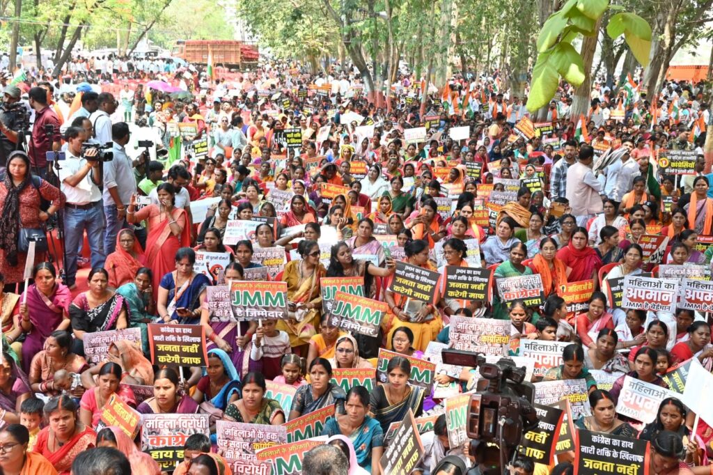 The Jan Sabha रांची, विशेष संवाददाता: राजधानी रांची की सड़कें शनिवार को उस वक्त नारों से गूंज उठीं, जब चिलचिलाती गर्मी और भारी तपिश के बीच हजारों महिलाओं ने ‘महिला आक्रोश मार्च’ के जरिए विपक्षी ‘इंडी’ (INDI) गठबंधन के खिलाफ मोर्चा खोल दिया। प्रधानमंत्री नरेंद्र मोदी द्वारा लाए गए ‘नारी शक्ति वंदन अधिनियम’ को संसद में रोकने के खिलाफ महिलाओं का यह गुस्सा मोरहाबादी मैदान से अल्बर्ट एक्का चौक तक एक विशाल जनसैलाब के रूप में दिखाई दिया। इस पदयात्रा ने न केवल विपक्षी दलों के महिला विरोधी रवैये को कठघरे में खड़ा किया, बल्कि राज्य की सियासत में एक बड़े बदलाव की आहट भी दे दी है।